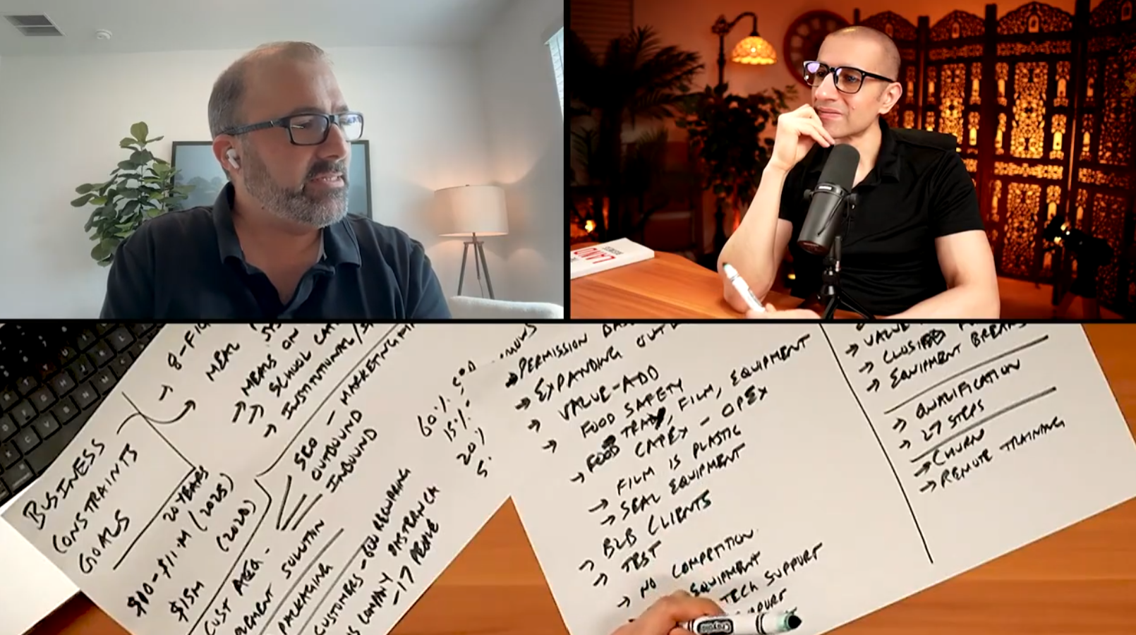 We covered the Solpak model. Tray reorders over equipment sales. Pricing tiers. Drop shipping truckload orders. Proactive maintenance on the large equipment in our clients’ kitchens. Then Abi pushed into the numbers most founders avoid. Customer acquisition cost. Churn. Lifetime gross profit. The four offer types every serious business should have built out: attraction, upsell, downsell, continuity.